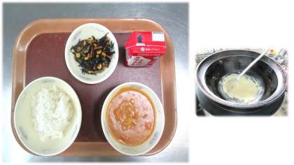 やはりカレーは人気の献立の1つです。給食のカレーのおいしさはルーです。ルーは給食調理員さんの手作りです。大きなかまにサラダ油を入れて小麦粉をふるいにかけながら入れてゆっくりゆっくりしゃもじでかきまぜながらいためて作ってくださっています。愛情いっぱいのカレーです。