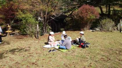 自然散策のあとは、お待ちかねのお弁当タイムです。朝から用意してくださった美味しいお弁当をいただきます。