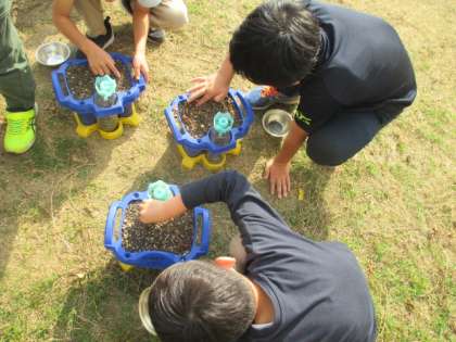 生活科「ぐんぐん そだて おいしい やさい」の単元では、夏に収穫したトマトの後に育てる、はつか大根の種を植えました。20日ほどの短い期間で簡単に栽培できる大根だそうですが、冬の寒さや虫は大敵です。毎日、こまめに水やりをして、大切に育ててほしいと思います。