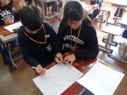 方眼を使って拡大図や縮図をかきました。どのように方眼を数えたらよいか説明することができました。