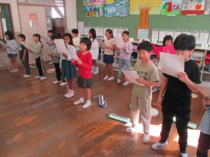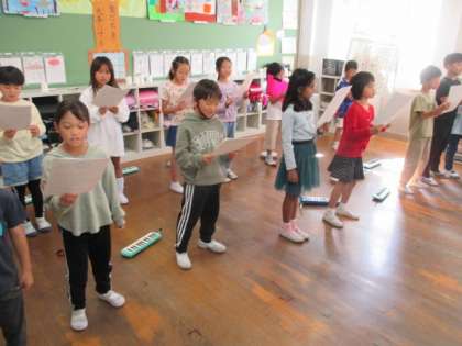 来月に迫ってきている学習発表会にむけての練習を始めています。2年生はこれまでに学習してきた鍵盤ハーモニカも使いながら合奏をしたり、パートに分かれて合唱をしたりします。朝休みの時間にも、「先生あの曲流してください!」と、熱心に練習に取り組む姿が見られます。本番が楽しみです。