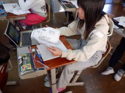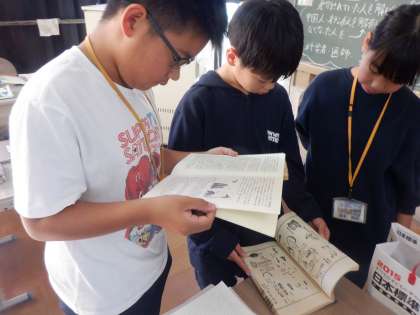 社会科の学習で、蘭学について学習しました。「解体新書」がどのようにして作られたのかを調べ、話し合うことができました。授業の最後に、「解体新書」のレプリカを配布しました。興味津々で読んでいました。