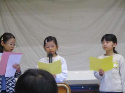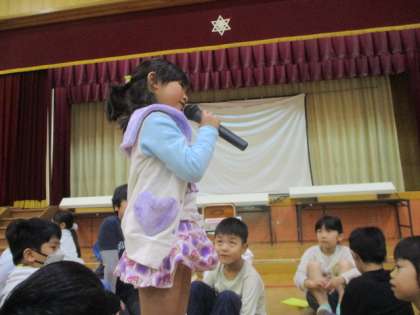 今日のにこにこ集会では代表の二人が大きな声でしっかり発表をしてくれました。学習発表会効果もあり、声がより響いていました。