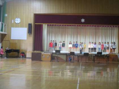 いよいよ学習発表会が迫ってきています。今日を含めて学校に来るのは3日間。この3日間でどのように仕上げていくのかが本番に向けて一番大事になってきます。今日は、当日の伴奏に合わせた歌い出しやセリフなどもすべて入れて一連の流れを確認したりしました。来週の2日間でさらに高めて本番を迎えたいと思います。