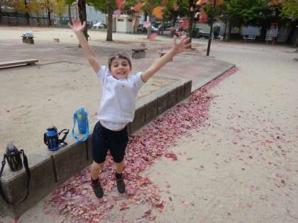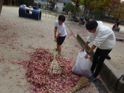 飛鳥井公園へ行って、落ち葉を集めました。