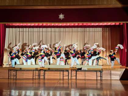 明日はいよいよ学習発表会です。今日は、学習発表会のリハーサルがありました。宿泊学習を終えてからあまり間もない中でしたが、一生懸命に合唱や合奏、民族教室の子どもたちとの合同発表の練習に取り組んできました。本番では、練習の成果を存分に発揮してくれることと期待しています。楽しみにしていてください。写真は、民族教室の子どもたちと取り組んでいる「7人のトッケビと仲間たち」のリハーサルの様子です。