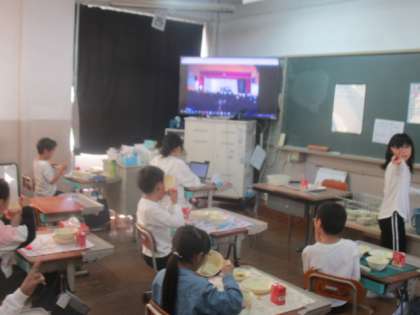 今日は、学習発表会がありました。これまでの学習や練習の成果が十分に発揮された素晴らしい発表になりました。給食の時間には、3年生の演技を動画でふり返りました。今回の学習発表会を通して、さらに団結してクラス全体で成長していってほしいと思います。