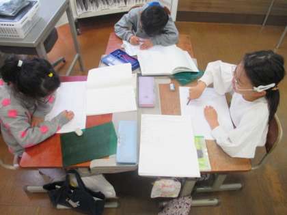中には、1年生に説明文を読んでもらうため、漢字にフリガナをふったり、丁寧な字で書こうとしていたり、相手意識をもって学習に取り組めている子たちが多かったです。予定では、金曜日に1年生と交流を予定しています。最後のラストスパート頑張ってほしいと思います。