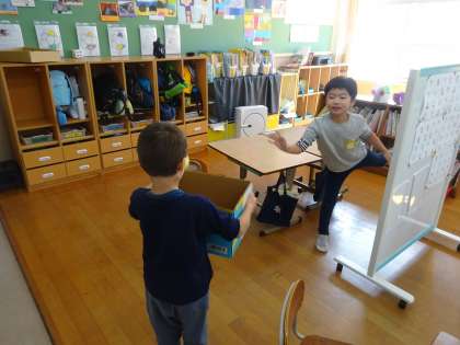 ボールがはこに入ったかずを けいさんします。