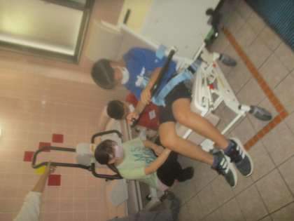 介護老人福祉施設花友しらかわでは、歩行器を使ってみたり、寝たままお風呂に入る機械を見せていただき体験させていただいたりしました。