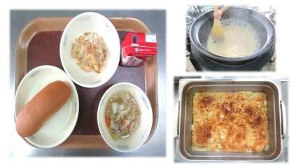 今日の給食は ミルクコッペパン 牛乳 ペンネの豆乳グラタン 野菜のスープ煮 です。