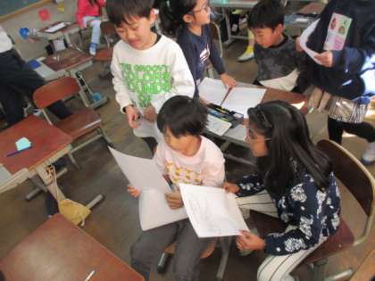 生活科「もっともっとまちたんけん」の学習では、来週養正サテライトへ町探検に行く予定です。それぞれが職員さんに質問したい内容を考え、交流をしました。