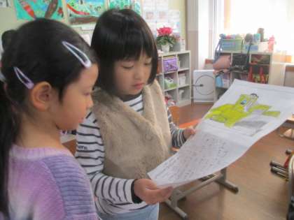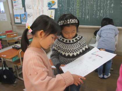 自分が選んだ車の仕事とつくりを調べて、友だちと交流しました。あまり聞きなじみのない自動車があったり、名前は知っていても仕事やつくりを始めて知るものもたくさんあり、「そうなんや!」「知らなかった!」と学習を深めていました。