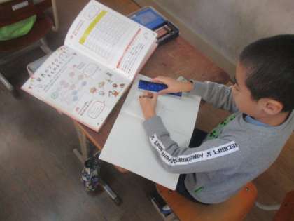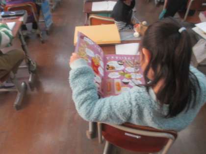 国語の学習では、これまで読み進めてきたすがたをかえる大豆の本文から読み取った筆者の国分さんの書き方の工夫をもとに自分たちですがたをかえる○○ブックを作る段階に差し掛かりました。今日は参考図書を手に取って、事例として書くすがたをかえた後の食品を調べてイメージマップにまとめました。
