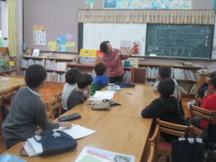 図書の時間には、学校司書の先生にハーメルンのふえふきというお話を読み聞かせしてもらいました。じっくり聞けば聞くほど少し怖いような感じのするお話でしたが、いつもとは少し違った読み聞かせを味わうことができました。