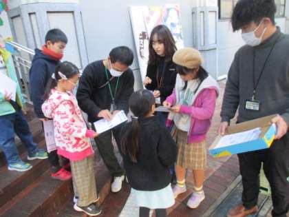 今日のクリーンキャンペーンは、いつものクリーンキャンペーンとひと味違いました。靴箱の上に、ビンゴカードが置いてあったのです。クリーンキャンペーンに参加すると児童会の6年生からシールがもらえて、そのシールを集めることでビンゴを目指せるのです。