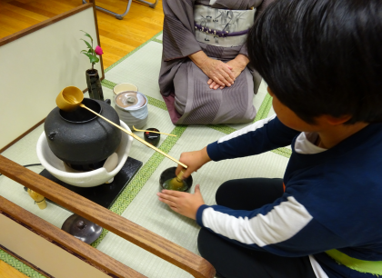 今日は、茶道の先生に来ていただいて、お茶を点てたり、お菓子をいただいたりしました。