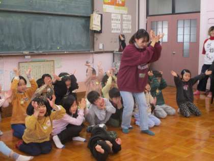 インプロ学習には答えはなく、どんな表現をしても正解です。子どもたちも自分が思いつく表現を自由にしており、自然と笑顔になるとても楽しい活動でした。