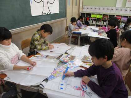 凧にタコを描いたり、空を飛ぶ動物や乗り物を描いたりと思い思いに描いていました。次はみんなで凧揚げです!楽しみですね。