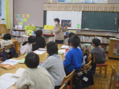 今日の図書の時間の読み聞かせは、納豆に関する本でした。子どもたちの第1声は、「大豆だ!」でした。すがたをかえる大豆の事例としても登場した納豆ということもあり、楽しそうに読み聞かせを聞いていました。