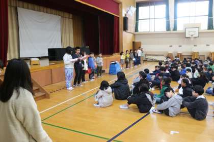 2月のにこにこ集会がありました。4年生からも2人が1月の人権学習のふり返りを発表してくれました。毎回思うのですが、100人以上を前にして自分の感想を伝えることができるというのはすごいことだと思います。緊張もきっとしていたことでしょう。しかし、堂々と自分の思いを伝えることができ、子どもたちの成長を感じました。