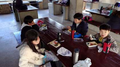 自然散策のあと、広場で遊んだのでお腹はペコペコです。