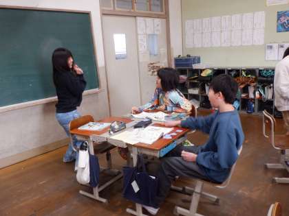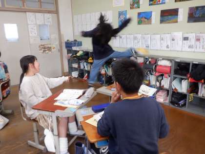 外国語で、なりたい職業についてジェスチャークイズをしました。What do you want to be? I want to be 〜. という表現を楽しみながら使っていくことができました。全力でジェスチャーしていて、盛り上がりました!
