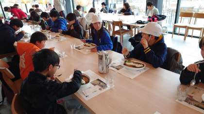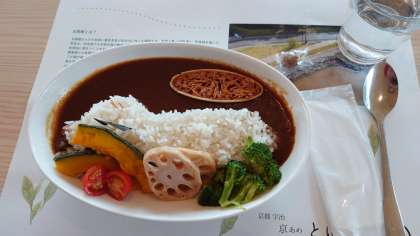 茶づなで宇治茶の歴史や製法を学んだあとは館内のレストランで昼食をとりました。太閤堤カレーという豊臣秀吉にちなんだカレーライスでした。美味しくいただき、最後の目的地、平等院に向かいます。