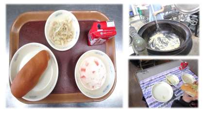チャウダーのルーも調理員さんの手作りです。ルーを作っている時から給食室の前はいいかおりがしていました。