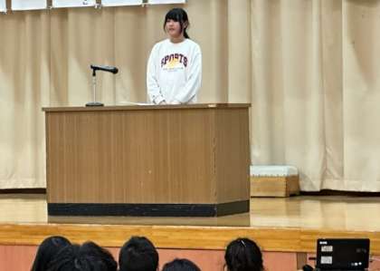 今日は、スピーチ大会でした。5年生は、おすすめしたい本について、どうしてその本をおすすめしたいのかという理由やその本がどのような学びを与えてくれるのかということなどについてのスピーチを行いました。代表児童2名は、休み時間や放課後の時間などに一生懸命練習を重ね、堂々と代表らしく素晴らしいスピーチを行うことができました。とても素晴らしかったです。また、大会に向けて、代表の2人を支えた周りの友達の姿もとても素晴らしかったです。さすが5年生!!