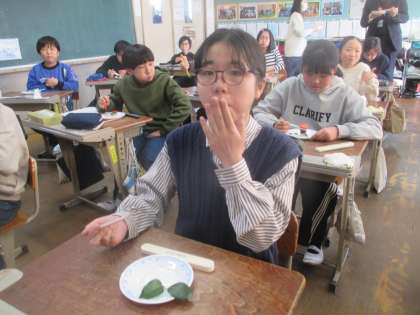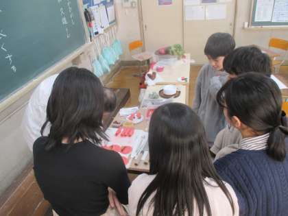 今日は、ドリームの学習で日本料理の料理人の方を講師にお招きし、『働く』とはどういうことなのかということや、『食べる』ことの意味などについてお話をしていただきました。また、学習の後半には、プロの技を見せていただくと共に、酢に付け込んだかぶらなどを使って『椿』に見立てた一品を作って食べさせていただきました。酸味と甘み、めりはりのある食感に子どもたちは「おいしい」「まだまだ食べられる」と大満足の様子でした。今日、お話していただいたことが、子どもたちの未来のどこかで生かされるといいなと感じました。