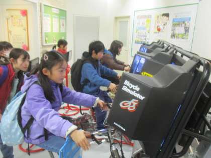 最後には、広報センターというところでいろいろな体験をさせてもらいました。白バイにまたがったり、犯人追跡や自転車のシュミレーターで体験したりして、普段の学校の学習では、なかなか経験できないような時間になりました。