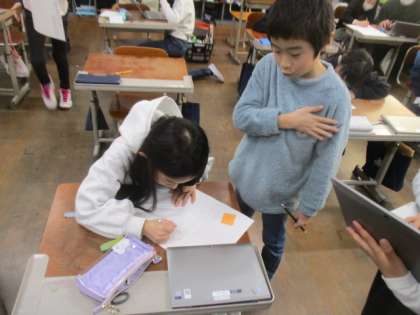 今日から単元の最後の活動に入りました。これまでの学びを全校や地域の方に発信することを目的にかもがわデルタフェスティバルについてのポスターを作成します。知ること、体験することの大切さを知った子どもたちだからこそのポスターが出来上がることを楽しみにしています。