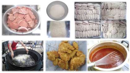 塩こしょうをした豚肉に、小麦粉を水でといた液につけ、パン粉をつけていきました。