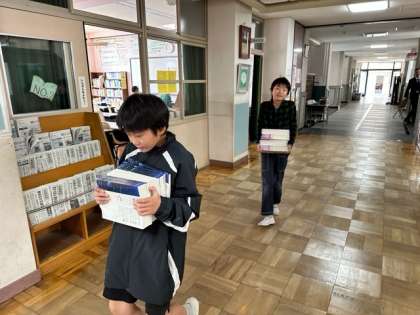 いよいよ令和6年度の5年生の幕が開きました。初日から元気いっぱい、笑顔いっぱいの5年生の子どもたちでした。自己紹介の場面では、元気よく自己紹介を行ったり、おもしろおかしく自己紹介を行ったりと個性があふれており、笑顔の絶えない素敵な時間となりました。また、教科書配布の際には、進んで教科書を運んだり、運んだ教科書を整理したりするなど、積極的にたくさんのお手伝いをしてくれました。とても頼もしい5年生です。この1年間で、どのような素敵な姿に出会えるのかとても楽しみです。