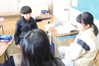 国語科で「つないで、つないで、一つのお話」の学習をしました。何人かのグループで、一文ずつお話を作っていき、一つのお話にするというものです。最初や最後が決まっていると、間の文章を工夫する必要があります。その面白さに気づいた子どもたちは、大盛り上がり。楽しみながら面白いお話を考えていました。