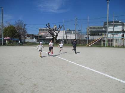 しっかり準備体操をして、みんなで軽く走った後、50mのタイムを測りました。
