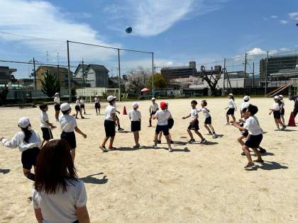 また、50m走の後には、これから1年間、養正小学校をリードしていく高学年としてケイドロやドッジボールなどの遊びを通して更に深く親交を深めました。暑い日差しが照り付ける中でしたが、子どもたちはとてもいきいきとしていました。