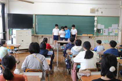 4月末に前期児童会選挙があります。もちろん児童会に立候補するのは6年生ですが、その選挙を支えるのは5年生です。選挙管理委員会に立候補してくれた5年生4名は、朝読書の時間に6年生の教室に行って、早速お仕事をしていました。子どもたちだけで違う学年の教室に飛びこむのは緊張したと思いますが、責任感をもって活動している姿は大変立派でした。これからも選挙まで頑張ってほしいと思います。