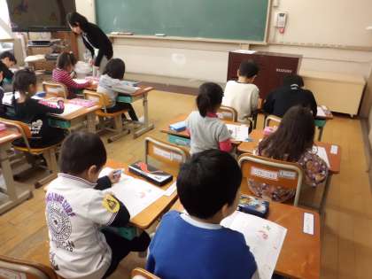 正しいえんぴつの持ち方で書くと,しっかり力も入って上手な字が書けるようになります。背筋もピンと伸ばして書くことができました。
