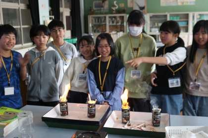 6年生理科の最初の単元。「ものが燃える仕組み」の学習で、ある実験をしました。スチール缶の上部を缶切でとってしまい、中にわりばしと紙を入れて燃やしました。しかしあまり上手に燃え切りませんでした。もっときれいに燃やしきる方法はないかをそれぞれで考えてみると、缶に穴をあけるというアイディアが出てきました。空気を新たに取り込むことが必要だと考えたそうです。その穴もどこにあけるのか、たくさん話し合った後に検証してみました。たくさん考えたからこそ、結果にくぎづけになっている子どもたちの表情がとても輝いて見えました。
