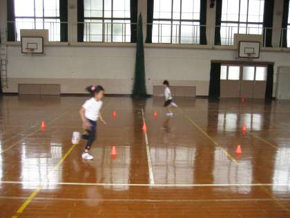 体育の学しゅうでは,りく上運動をしました。今日は雨がふったので,体育かんで『かけっこランドでダッシュ』をしました。50m走で,いいきろくを出すための方法をみんなで考えながら学しゅうをしました。スタートダッシュ・うでふりに気をつければ,はやく走れることや,ゴールをめざして最後まであきらめないなど,発見をすることができました。いよいよつぎの時間は運動場で50m走,本番です。