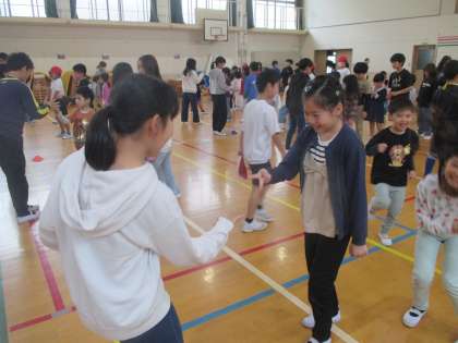 6年生が中心になり、楽しい遊びを考えてくれました。手をつないで入場したりプレゼントを渡したりして1年生を優しく迎えることができました。