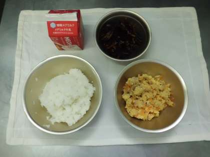 今日の給食は,ごはん・牛乳・親子煮・ひじきの煮つけでした。1年生は,ひじきを食べてくれるかな・・・と心配していましたが,全員きれいに食べてくれました。親子煮もおいしい・・・といいながら残すことなく食べました。ごはんもきれいになくなりました。