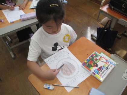 アサガオのタネの観察をしました。タネをよく見て色や形,思ったことなど,意見を出し合いワークシートに書きました。「早く植えて育てたい!」と意気込んでいます。