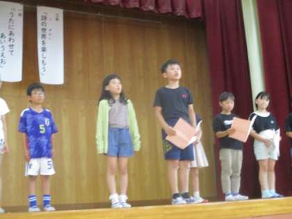 今日は音読発表会でした。3年生はトップバッターで、とても緊張しましたが、練習の成果が存分に発揮されていて、一人ひとり大きな声で発表できており、そろえるところもバッチリそろっていました!3年生のもっている力はすごいなと改めて思わせてくれる発表会になりました。