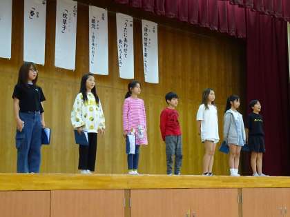 今日は、音読発表会がありました。高学年としての堂々とした態度での素晴らしい発表であり、5年生の子どもたちの持ち味である元気の良さが表れた大きな声での素敵な発表でした。短い練習期間の中で、グループごとに工夫を凝らし、アドバイスをし合いながら高め合っていく姿がとても素晴らしかったです。その成果を存分に発揮することができた音読発表でした。