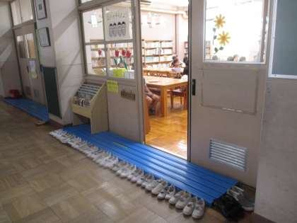 図書室の前を通ると,きれいに並んだ2年生の上靴が見えました。とても気持ちがいいですね。