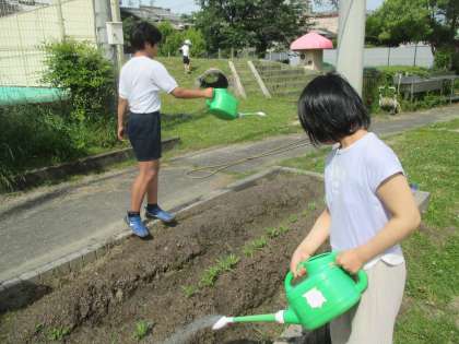 順調にポップコーンが育っています。今日も、気持ちを込めて水やりをしました。落花生の芽がでてくるのも楽しみですね。