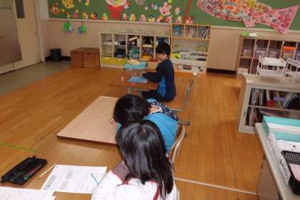 今朝は雨が降っていたのですが,3時間目の体育の時にはカラッと見事な快晴になりました。そんな中で風船を使って,バレーをしたり,落とさないように競争したので,みんな汗をたくさんかいて,いい運動ができました。授業の終わりに日陰で休んでいる様子からもよくうかがえます。